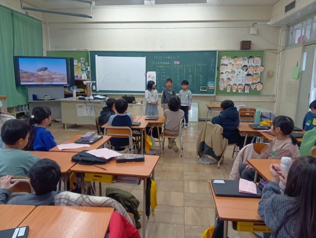 2年生は、30日(金)の授業参観で「一年間の学び」をテーマとして発表をします。タブレット端末を活用して、自分たちでスライドデータを作成しています。初めて触れる機能もたくさんあり、試行錯誤をしながらの発表準備です。どんな発表になるのか、ご期待ください。
