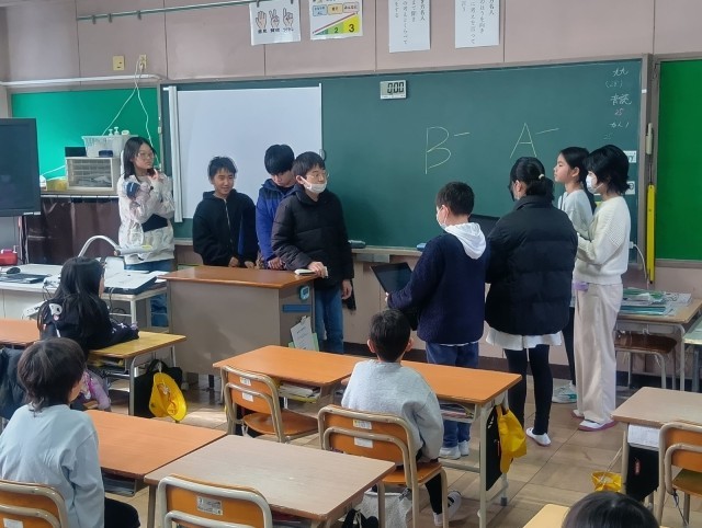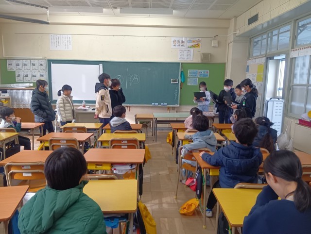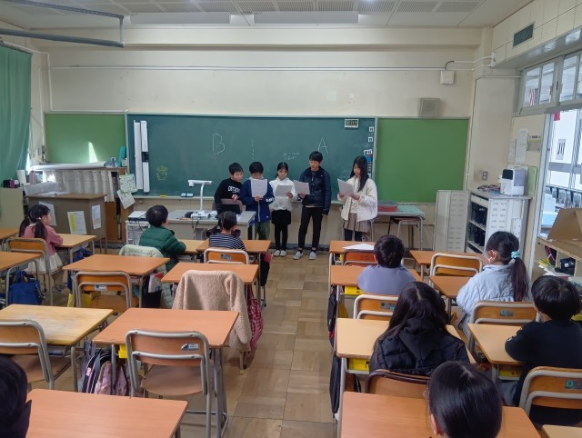 今日はなかよしウィークの最終日で、1年間の活動が終わりました。最終日は5年生が遊びを担当し、最後に6年生に向けて1年間の感謝の言葉を述べました。