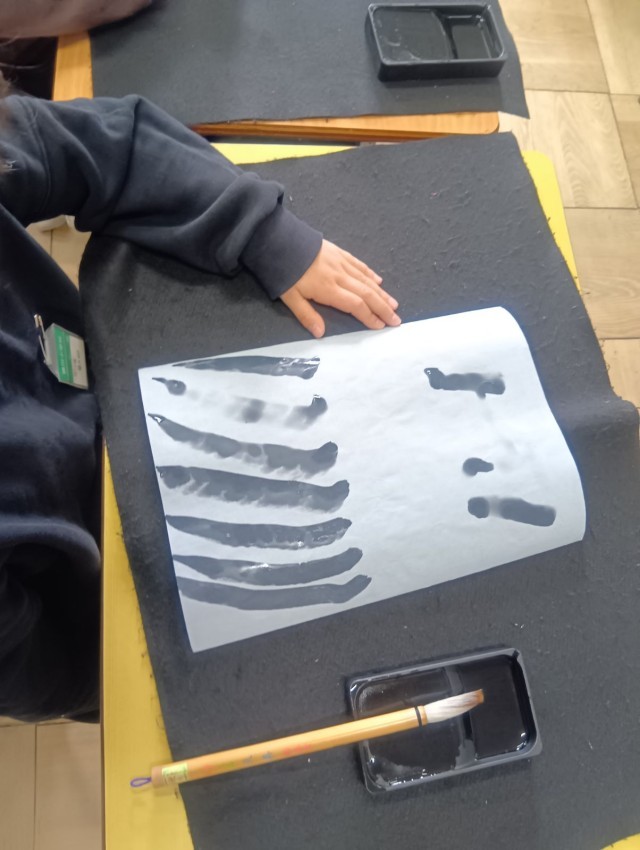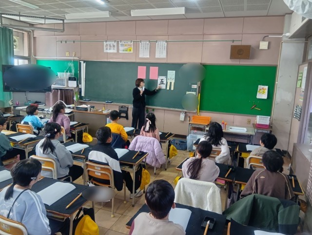 水書の練習は今回で最後でした。3年生からは、墨汁を使う授業が始まります。来年度の書写の授業でも、楽しみながら学びを続けてくださいね。