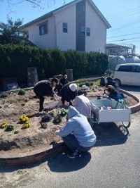 今日は少し肌寒い朝となりましたが、PTA花ボランティアの皆様に100周年花壇の手...