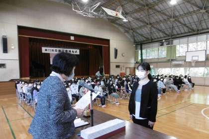 卒業式予行練習後で表彰をしました