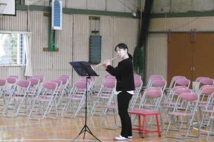 卒業式の予行練習の後で、表彰をしました。表彰の後には、フルートの演奏を披露してくれました。曲はヘンデルの「フルートソナタ ハ長調 第5楽章」です。体育館の中に素敵な音色が響き、演奏が終わると自然と拍手が湧きました。最優秀賞おめでとう。