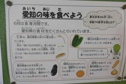 地域でとれた食べ物が給食にたくさん使われています。愛知の食べ物にみんなが興味を持ってくれたらうれしいです。