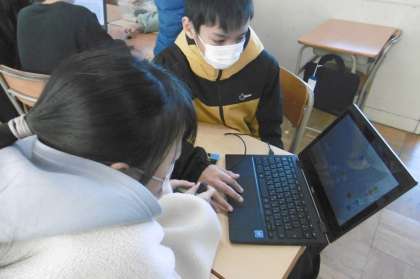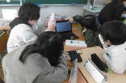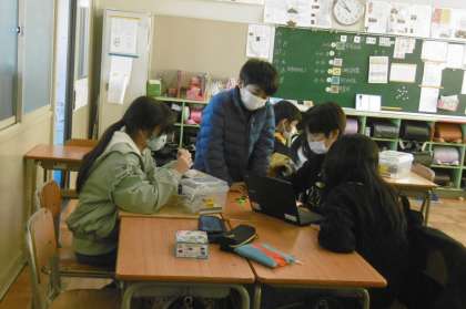 プログラミングを学んでいます。班のみんなで協力しながら進めています。