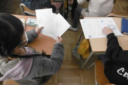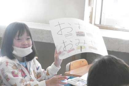 お店屋さんごっこの準備の様子です。お店の看板や売る商品を絵で書いたり、値段をつけたりして、みんなとても張り切っています。