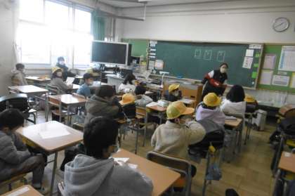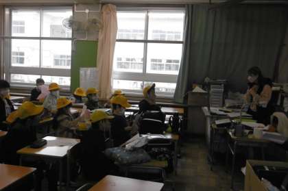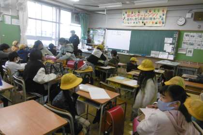 引き続き、通学班会議の様子です。全体で話をした後、班ごとに先生と話をしました。