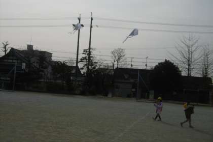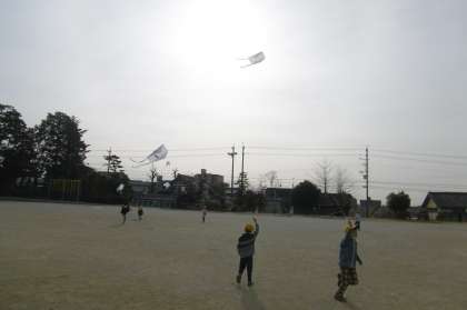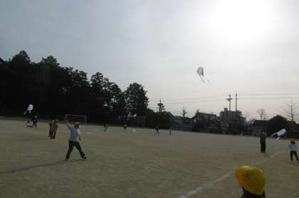 空高くあがった凧に、1年生のみんなはとてもうれしそうです。