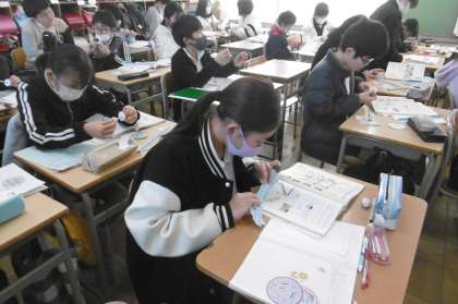 教科書を見ながら、それぞれパーツを抜いて組み立てます。