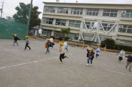 引き続き、1年生が生活科で凧あげをしている様子です。