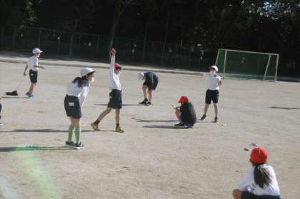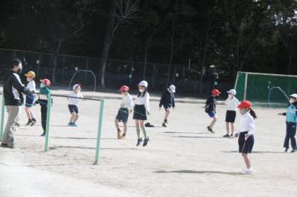 体育では、なわとび練習を中心にみんなで楽しく運動しています。
