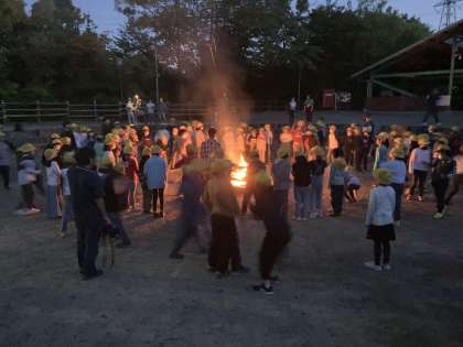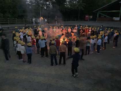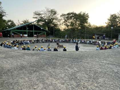 引き続き、キャンプファイヤーの様子です。だんだん日がくれて辺りがぐっと暗くなってきました。ファイヤーの火がありがたいですね。みんなのスタンツも炎が燃えるように、盛り上がっていきました。