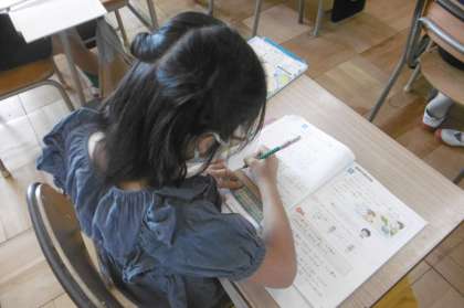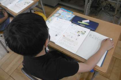 6月7日(水)2年生の授業の様子です。算数では「たし算とひき算のひっ算」について学んでいます。ちょうど見に行った時は、いろいろなたし算のひっ算について学んでいました。一の位が0の計算「19+80」や一の位が繰り上がって0になる「57+13」、10の位が空位の計算「43+5」など様々なたし算に挑戦しています。ひっ算の大切なポイント、位をそろえること、ものさしを使って丁寧にかくこと、繰り上がった時の覚えを書く場所など先生と一緒に確認しています。