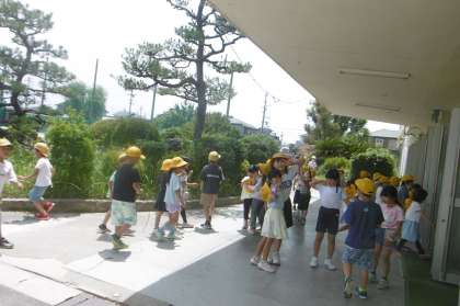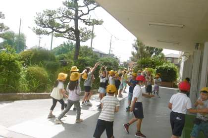 6月7日(水)よく晴れていて気温も上がりましたね。放課が終わって教室に戻るときに、ミストシャワーが大人気です。みんな、とても気持ちよさそうにミストの下をくぐっていきます。