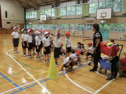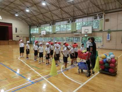 2年生の体育です。授業の終盤に、プールの安全指導としてバディの確認をしました。バディとは、ペアを組んで互いの存在を確認し、いち早く不明者をチェックするシステムです。このバディ確認がなぜ大切か子どもたちにもきちんと伝え、安全対策を徹底してプールに臨みたいと思います。