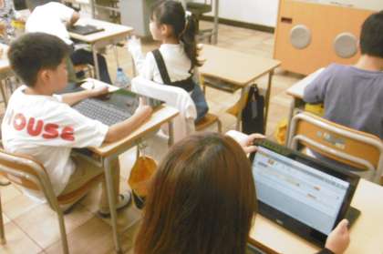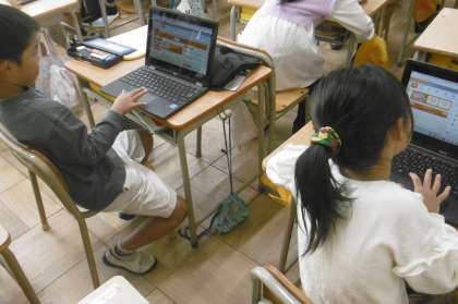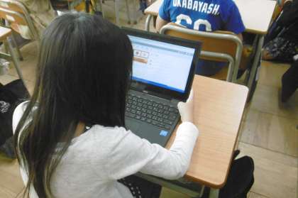 1年生は朝の時間を使って心の天気を入力しています。毎朝やっていることなので、みんなとても上手にできています。