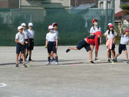 5年生の体育です。本日は外部講師をお招きして「投げる」運動を教えていただきました。これで「走る」「跳ぶ」と併せて3領域の授業をそれぞれのクラスが体験しました。学んだことを今後意識していくと、どこかで体の動かし方がつながるときがくると思いますので、頑張っていきましょう。