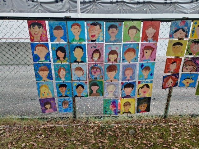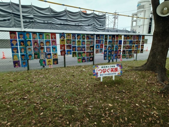 春日井まつりの作品展示として、今年度は「野外造形展」に3年生の図工作品を展示しています。初日は少し雨が降りましたが、多くの方々にご来場いただき、ありがとうございました。展示は春日井まつりに合わせて19日(日)までです。場所は中央公園の北側フェンスです。他校の作品もたくさん展示していますので、ぜひ合わせてご覧下さい。