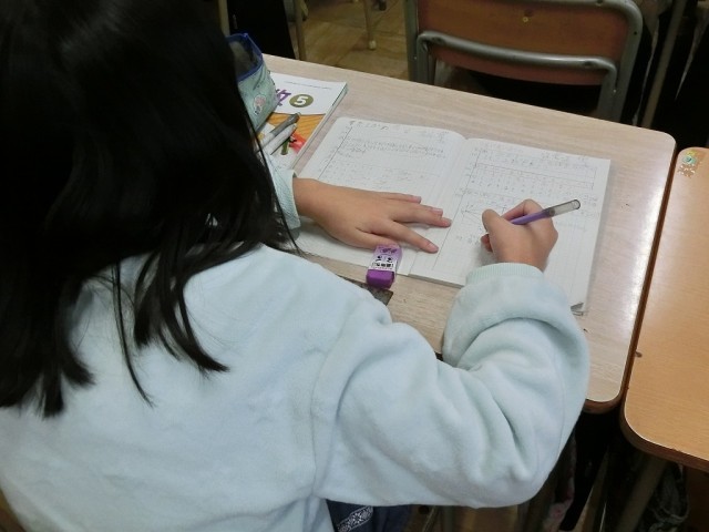 5年生の算数です。菱形の面積を求める方法を考えました。既習事項の四角形と三角形のときを思い出し、パーツを組み替えて習った知識が使えないかのアイデアを出し合いました