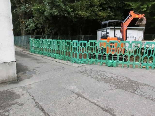 Home&Schoolでお知らせしていました防災倉庫の増設工事が始まりました。写真のように体育館と両社宮の間の道に続くところです。工事期間中(~11月6日)はできる限り、車での通行を避けていただけるとありがたいです。特に下校時は多くの子どもたちが移動しますのでご注意ください。ご協力、よろしくお願いします。