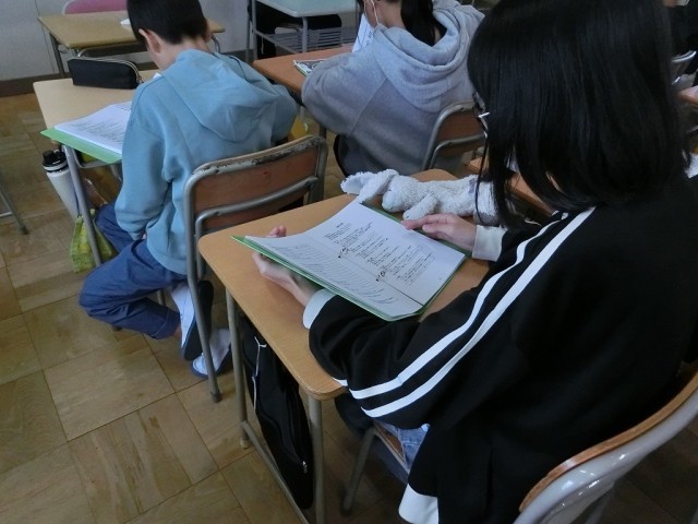 6年生の修学旅行準備です。栞が完成したので、自分たちのファイルに綴じ込みました。今後、中身を確認し、必要なものを準備していきますので保護者の方のご協力をお願いします。