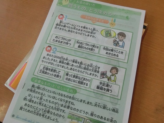 4年生の総合です。今日は明治安田生命さんのご支援をいただき、金融教育を行いました。「欲しいものがあるけれどお小遣いが足りないとき、どうしますか?」「ゲームを早くクリアするために課金アイテムを買いますか?」など、子どもたちの身近に起こりうる問題について、一緒に考えました。