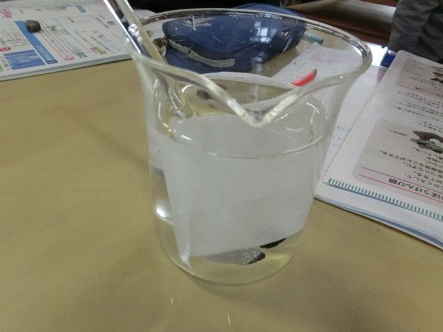 5年生の理科です。水溶液の実験で食塩を水に溶かし、プレパラートで蒸発させたあとの様子を予想しました。