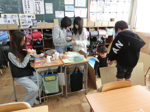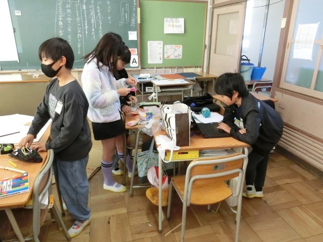 5年生の学級活動です。クラスの催しのために、班に分かれて準備を進めていました。どんなものができあがるのか、今から楽しみですね。