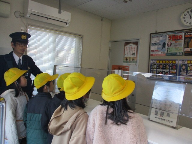 2年生の校外学習の様子です。西部ふれあいセンターの所長さんと派出所の警察官の方にお話を伺いました。それぞれがどのような役割を果たしているのか、施設や具体物を見せていただきながら学ぶことができました。