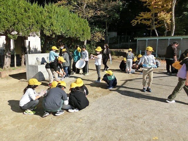 3年生の社会科です。昔の暮らしの学習で「洗濯体験」を行いました。洗濯板でゴシゴシと洗いながら、洗濯機の便利さについて考えました。昔の方の苦労をうかがい知ることができました。