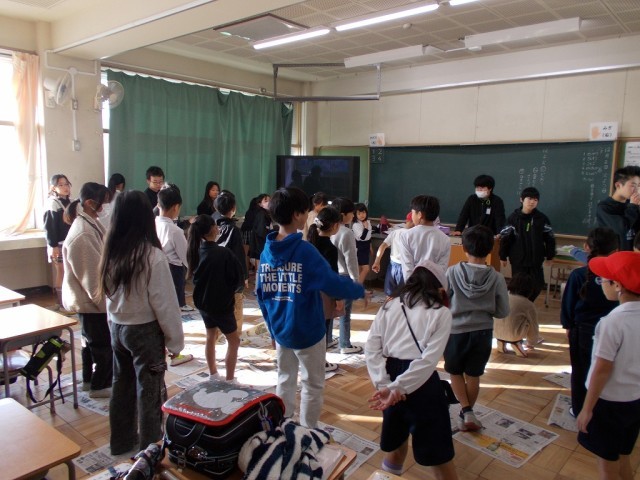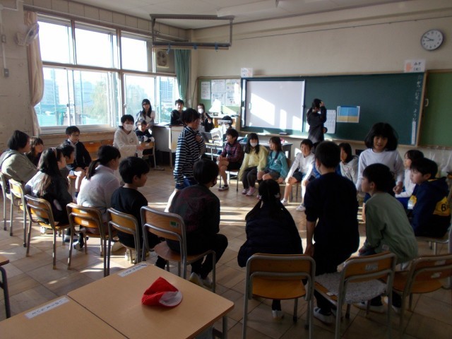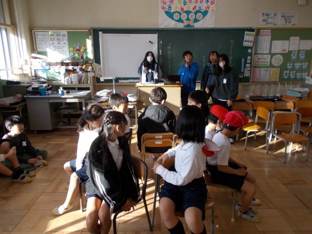 業前の時間を使い、児童が考えたレクリエーションを各教室で楽しみました。6年生は、遊びの司会・運営を行いました。低学年に分かりやすい言葉で説明することができました。5年生は、1年生を各教室へ連れていきました。はぐれないように手を繋いで移動する姿が見られました。久しぶりの縦割り活動は、笑顔で楽しむことができました。