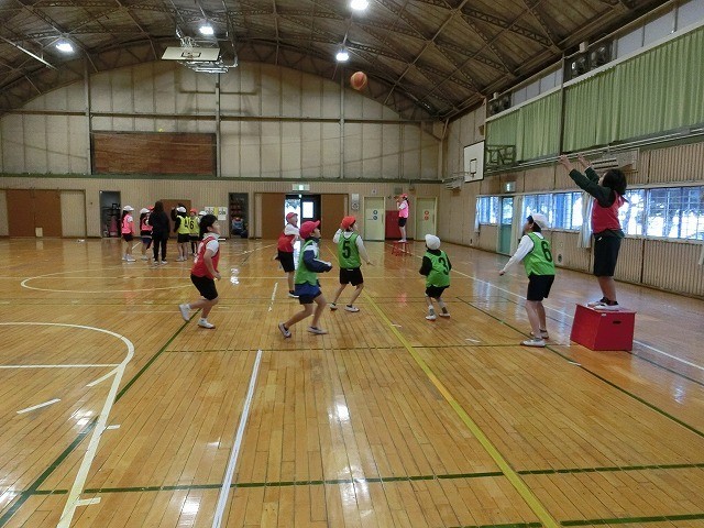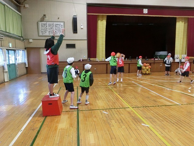 4年生の体育です。ポートボールの試合をしました。ドリブルやパスなど、ボールの扱いも随分慣れてきた様子でプレーをしていました。