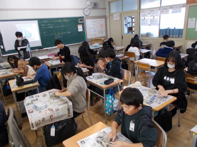 6年生の図画工作科では「水の流れ・水の形」という授業を行っています。水の流れる仕組みを粘土で作りました。この後、キラキラなラメと色砂を加え、よりきれいに水の流れを表現します。完成が待ち遠しいですね!