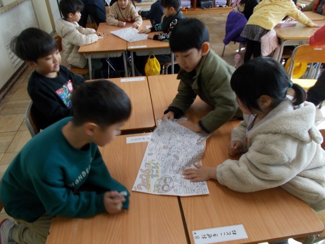 始業式後、1年生はすごろくゲームを通して、冬休みの出来事を友達と発表し合いました。楽しみながら友達とコミュニケーションを取ることができました。冬休みに負けないような思い出を3学期に作りたいですね!