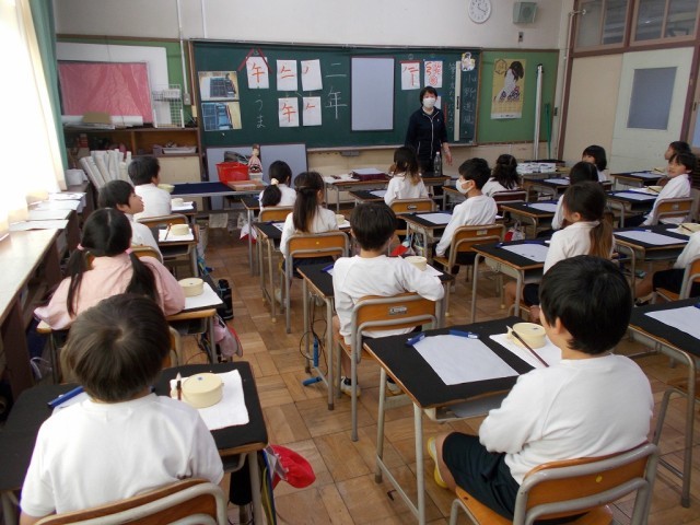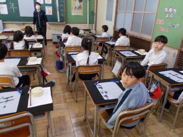 本日、2年生は「書の時間」がありました。水習字で今年の干支「午」を書きました。また「二年」や「名前」などを一生懸命に書く様子が見られました。2月には、子どもたちが楽しみにしている墨で初めて字を書きます。3年生からは本格的に習字が始まるので、少しずつ慣れていきたいですね!
