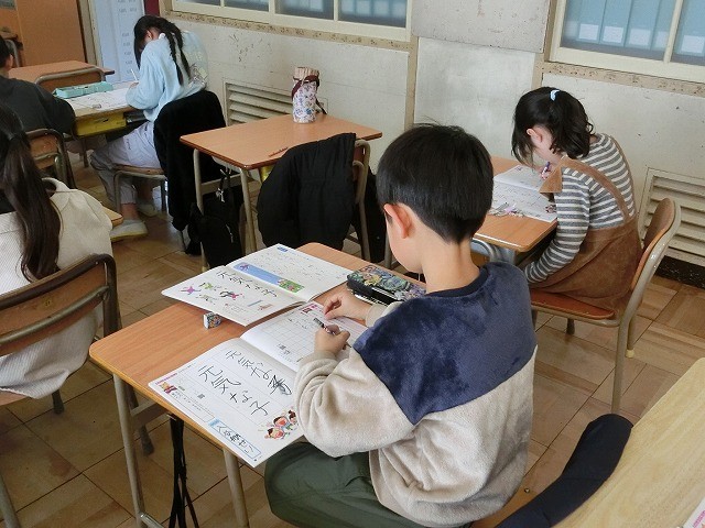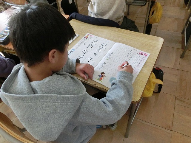 2年生の書き方です。硬筆のワークを使い、丁寧になぞり書きをしていました。