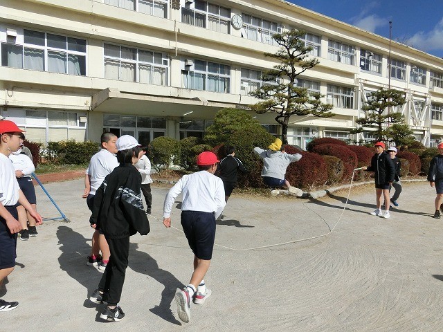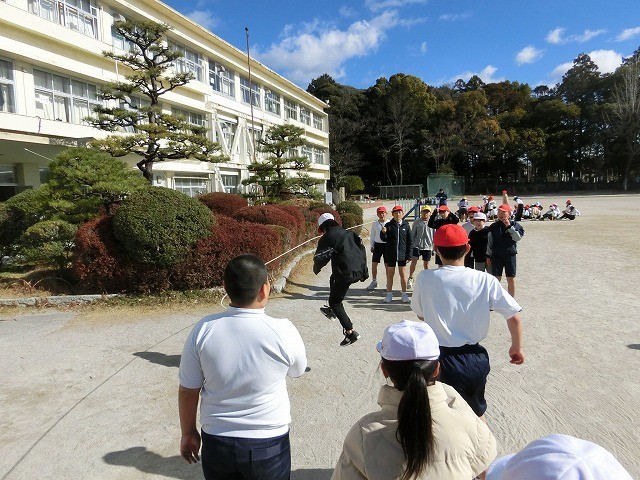 6年生の体育です。長縄の記録作りに燃えています。放課も練習に励んでいるとのことで、気合いが入っていました。