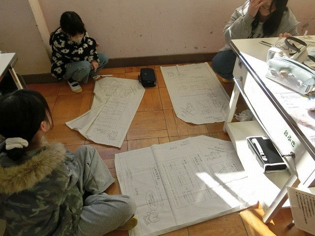 5年生の家庭科です。ミシンを使ってエプロンづくりをしました。布地に説明が書いてあるので、とてもわかりやすくつくることができるようです。