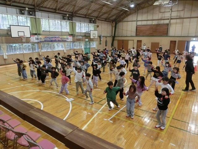明日はいよいよ「6年生を送る会」です。どの学年も最終仕上げで気合いが入っていました。写真は1年生のダンスの様子です。