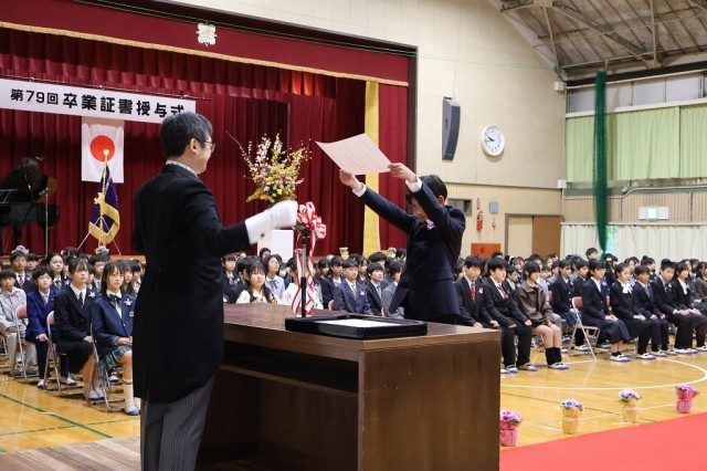 これからは中学校へ向け、一人一人がしっかりとした足取りで歩んでくれることを願うとともに、卒業生のみなさんの活躍を期待しています。