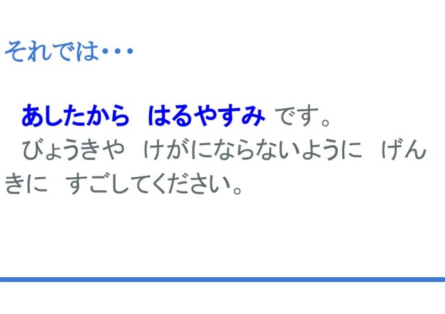 春休みに病気や事故なく、元気に過ごしてください。