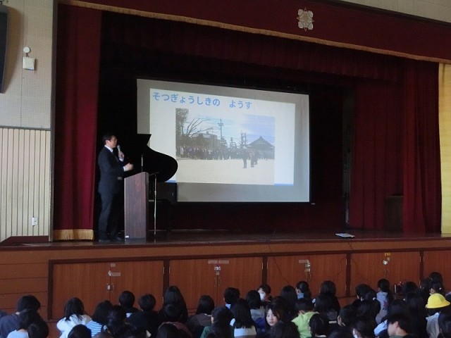 修了式の様子です。各学年の代表児童に修了証が手渡され、それぞれの1年の頑張りを振り返る機会となりました。2週間後には1学年ずつ進級し、新1年生を迎えます。充実した春休みを過ごし、4月9日の始業式には新たな気持ちで登校してほしいと思います。この1年間、保護者の皆様には温かいご支援をいただきました。職員一同、感謝申し上げます。令和8年度も、よろしくお願いします。