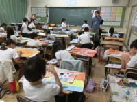 3年生の図工です。先日、割り箸ペンで描いたタコやマグロ、チンアナゴなどの生き物...