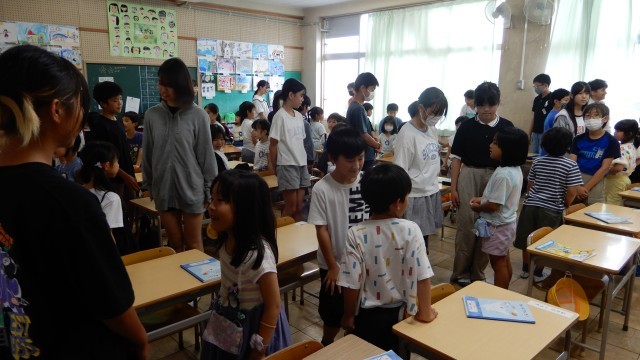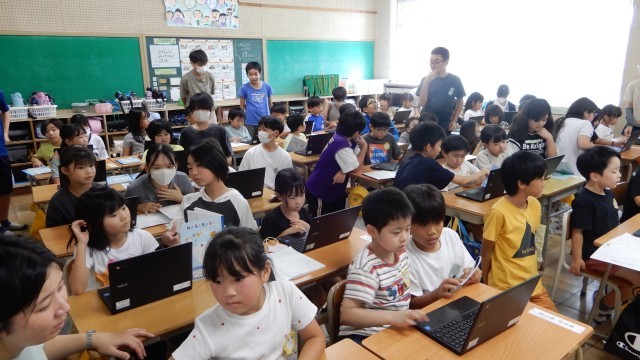 9月19日の5時間目、6年生は1年生にクロームブックの使い方を教えに行きました。