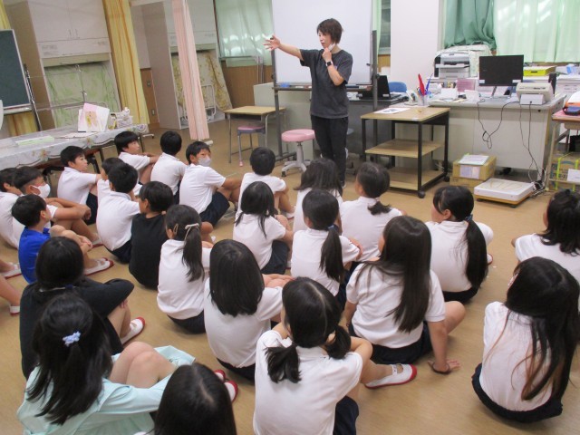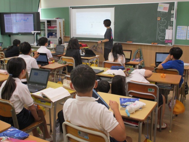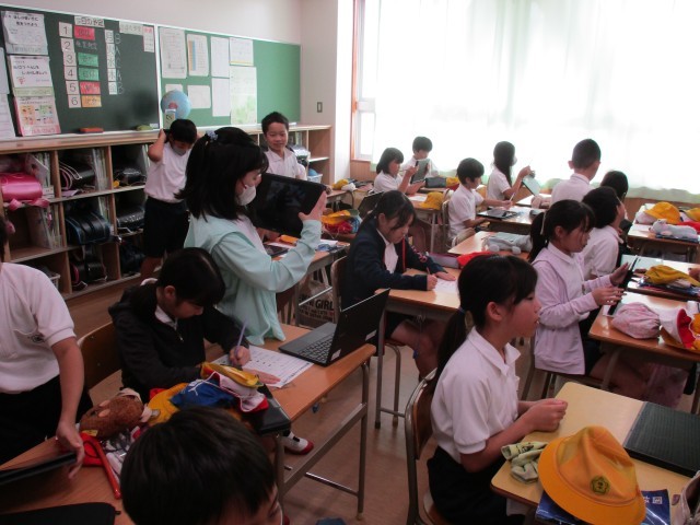5年生の2学期発育測定がありました。教室では、学校保健委員会で使う普段の勉強中の姿勢を撮影して、AEDについて学びました。その後、新しくなった保健室で2学期の身長・体重を測りました。
