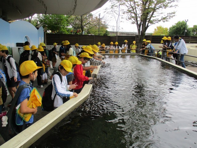 5年生の秋の校外学習でアクアトト・ぎふに行きました。SDGsについてのプリントで魚について学んだり、世界の川に棲むいろいろな魚や生き物を見てきました。広場では、魚にエサをあげることもできました。