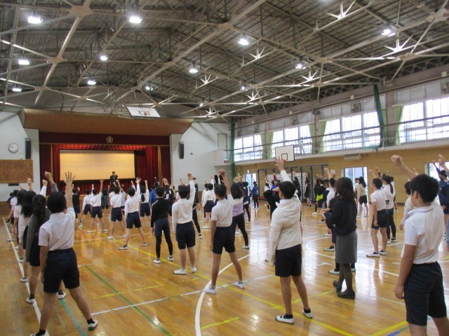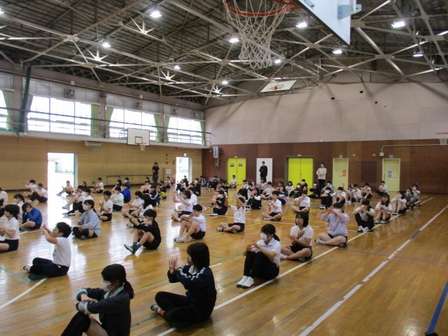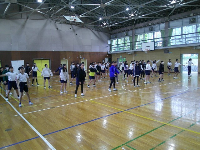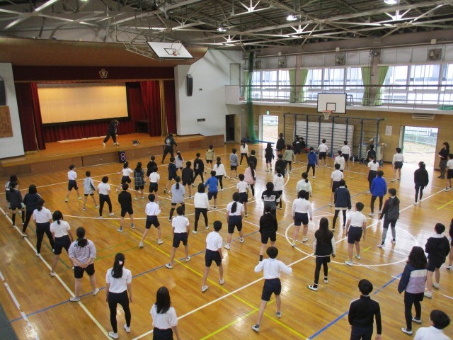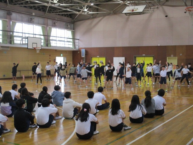 10月31日(金)、1,2時間目に講師の方を招いて体力向上ダンスを行いました。ヒップホップ系のダンス、手話を用いたダンス、周りの人へ感謝を伝えるダンスと3つのテーマでダンスを練習しました。初めは少し緊張した様子もありましたが、体を動かすうちに心もほぐれていき、とても楽しそうにダンスを踊っていました。最後には学年を2つに分けて、練習したダンスをお互いに披露しました。