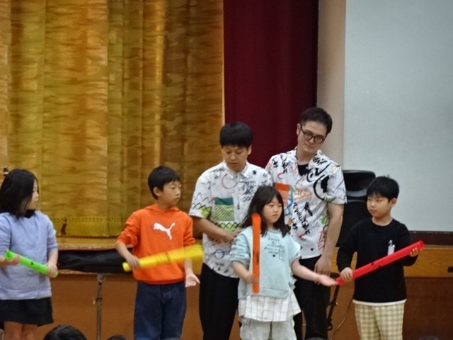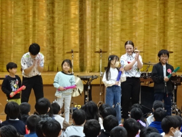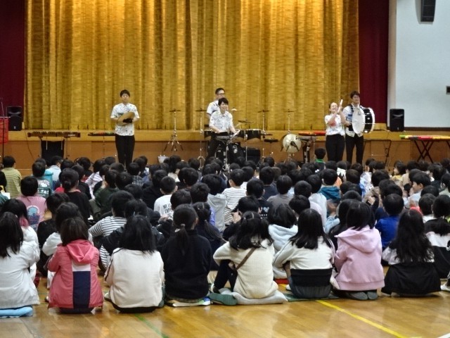 5日(水)、2部制で芸術鑑賞会「パーカッションによる楽しい音楽鑑賞」が行われました。子どもたちが参加する場面も多々あり、とても楽しそうでした。あっという間の1時間でしたが、子どもたちの耳にはしっかりとパーカッションのリズムが刻まれたようです。