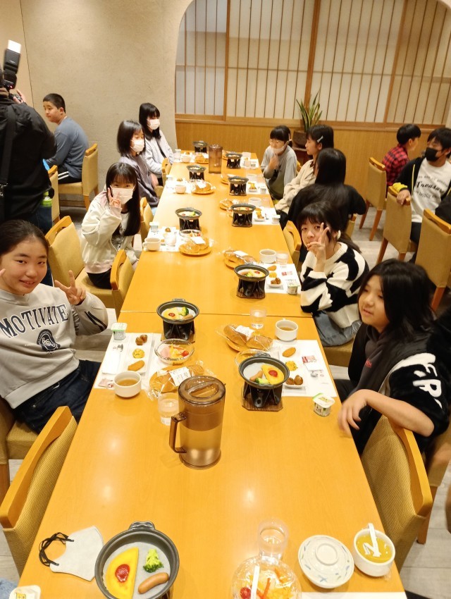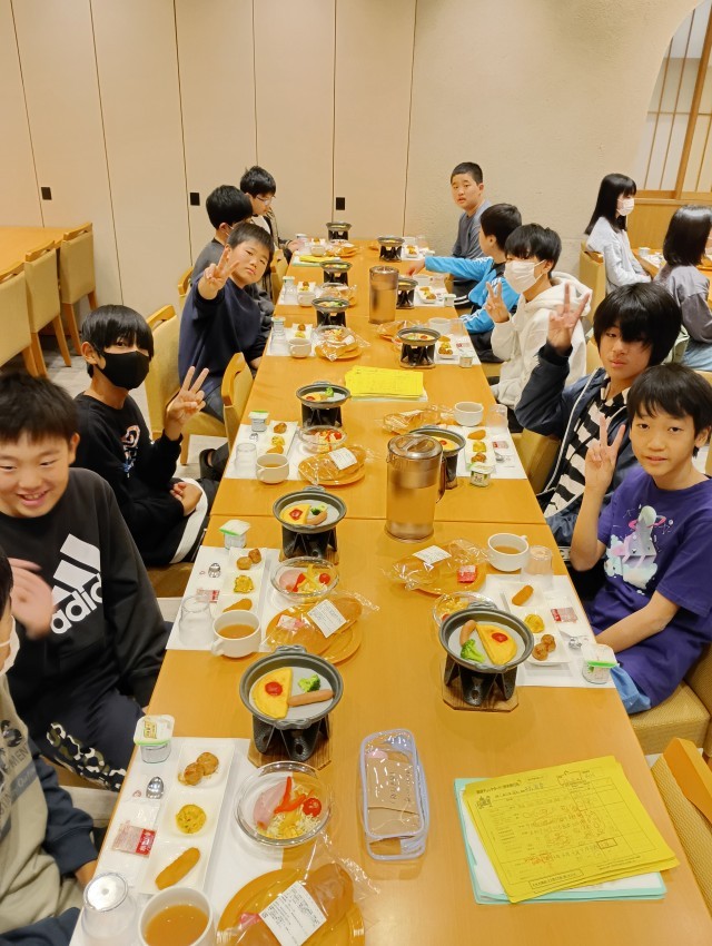 2日目を迎えました。朝食の様子です。何だか眠そうな子の姿もちらほら見られます。