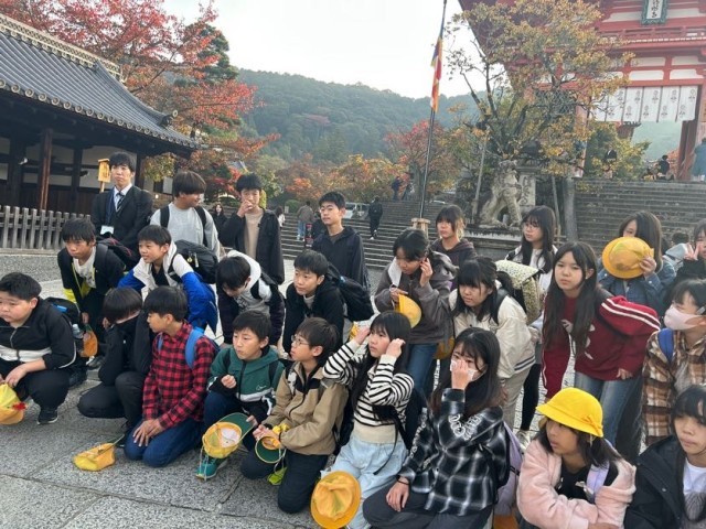 ホテル本能寺を出発し、清水坂に到着。梅山堂でお土産を買って清水寺へ。舞台の高さにびっくりでしたね。