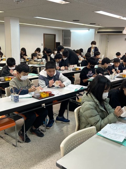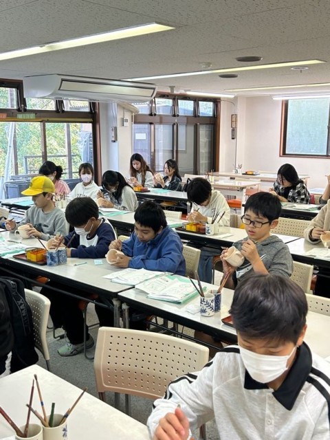 森陶器館で京焼の絵付け体験を行いました。みなさん、真剣です。想い出に残るお土産になりますね。